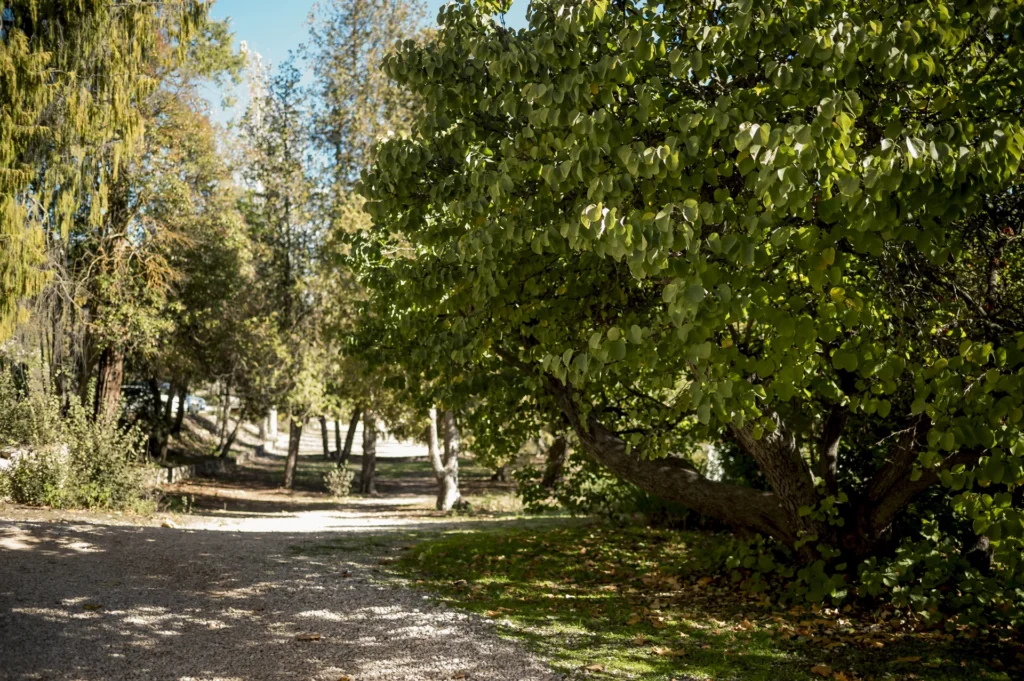 Zona con arboleda que proporciona sombra natural.