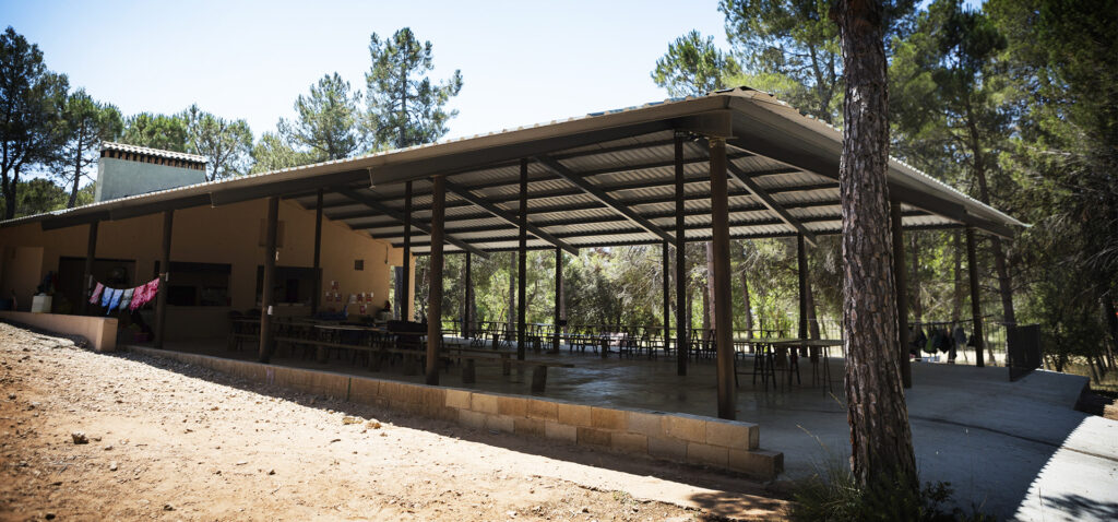La superficie tiene una capacidad de hasta 100 plazas y las instalaciones están dotadas de cocina, comedor cubierto, mesas, bancos, fregaderos y aseos.